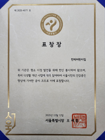 중구시설관리공단이 운영하는 만리어린이집이 서울시가 주관한 ‘공공기관 건강먹거리 실천사업’ 우수기관으로 선정돼 서울특별시장 표창장을 받았다.
