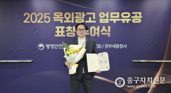 서울 중구청 도시디자인과 조자룡 주무관(38)이 지난해 12월 29일 정부세종청사에서 열린 ‘2025옥외광고 업무유공 포상 수여식’에서 행정안전부(이하 행안부) 장관 표창을 받았다.
