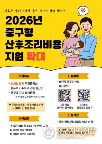 중구는 임산부에게 50만 원의 산후조리비용을 지원하고 있다. 여기에 서울시의 ‘서울형 산후조리비’ 100만 원을 함께 받을 수 있어, 중구 거주 산모는 총 150만 원을 지원받게 된다.