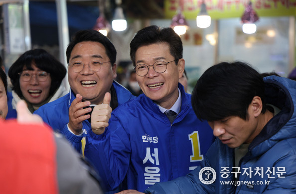 이동현 중구청장 예비후보는 정원오 서울특별시장 예비후보와 함께 3월 10일 중구 대표 상권인 백학시장과 중앙시장을 합동 방문하며 현장 민심을 청취했다.