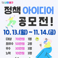 서울 중구가 11월 14일까지 ‘2025 하반기 정책 아이디어 공모전’을 개최한다. 공모전은 중구민과 중구 생활권자라면 누구나 참여할 수 있다. 공모 주제는 ‘함께 만들어가는 도시, 중구’로 △통·반장, 직능단체, AI를 활용한 주민소통 활성화 △구도심 중구의 특색을 살린 도시환경·경관 개선 △생활 속에서 실천할 수 있는 탄소중립·재활용 △1인가구, 어르신, 취약계층을 위한 안전한 동네 조성 △중구의 정체성을 반영한 동네축제 및 관광활성화 △기타 지역문제 해결을 위한 아이디어 등이다. 단순한 민원이나 건의는 심사 대상에서 제외된다. 공모 참여자는 한 가지 분야를 선택해 A4용지 1장 이상(900자 이상) 분량의 제안서를 작성해 제출하면 된다. 온통중구((https://ontong.junggu.seoul.kr) 또는 이메일(withjunggu2025@naver.com)로 제출하거나 중구청 정책협력과를 방문해도 된다. 제안서 양식은 중구청 홈페이지 또는 온통중구 홈페이지에서 내려받을 수 있다. 제안실무평가단과 구민창안심사위원회 등의 심사를 거쳐 12월 중으로 △대상(70만원, 1명) △최우수상(50만원, 2명) △우수상(30만원, 3명) △노력상(10만원, 3명