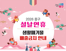 서울 중구가 설 연휴 동안 주민 불편을 최소화하기 위해 특별 청소대책을 추진한다. 구는 연휴 기간에 청소상황실을 운영하고, 오는 15일부터 17일까지 쓰레기 배출을 금지한다. 중구는 마포자원회수시설이 설 연휴에 맞춰 휴무에 들어감에 따라 15일부터 사흘간 쓰레기 배출을 금지한다. 쓰레기는 18일 오후 7시 이후부터 정상 배출하면 된다. 구는 주택가와 전통시장, 음식점 밀집지역 등을 중심으로 집중 홍보해 주민과 상인들의 혼선을 줄일 예정이다. 연휴 기간 중 청소 공백을 최소화하기 위해 상황실도 운영한다. 구는 오는 2월 14일부터 18일까지 청소상황실(☎02-3396-5482)을 가동해 청소 민원에 즉각 대응한다. 청소상황실은 오전 9시부터 오후6시까지 운영하며, 청소기동반과 폐기물 대행업체를 통해 청소민원이 들어오면 즉시 출동해 처리할 예정이다. 다중밀집지역과 청소취약지역 순찰을 이어가고, 특히 관광객이 몰릴 것으로 예상되는 명동에는 평소와 동일한 수준의 청소 인력을 배치해 빈틈없이 거리 청결을 유지한다. 또한 연휴 전후로 주요 간선도로와 이면도로의 노면 청소를 실시하고, 방치된 폐기물도 일제 수거할 예정이다. 아울러 주민들과 설 맞이 대청소도 펼친다. 연휴