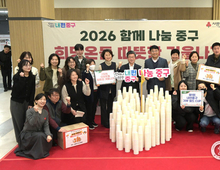 지난 2월 9일 오전 중구청 로비에 다회용 컵 2천82개가 차곡차곡 쌓여 탑을 이뤘다. 서울 중구(구청장 김길성)가 직원들과 함께 펼친 다회용컵 보증금 기부 챌린지를 성공적으로 마무리하며 208만2천원을 모았다. 모인 성금은 취약계층 지원을 위해 사용될 예정이다. 이와 함께 설 명절을 맞아 '나눔 정(情)거장' 캠페인을 통해 직원은 물론 주민들과 함께 식료품 나눔도 이어간다. 중구는 지난 2일부터 6일까지 5일간 구내 카페에서 사용한 다회용 컵 보증금을 기부하는 '내편중구 기부 월드CUP'을 진행했다. 이번 행사는 ‘2026 희망온돌 따뜻한 겨울나기’ 사업의 일환으로, 중구청 37개 전 부서 직원이 참여했다. 목표액이었던 100만 원을 훌쩍 넘기며 높은 참여 열기를 보여줬다. 모인 기부금은 사회복지공동모금회를 통해 취약계층 지원에 사용될 예정이다. 직원들은 평소 다회용 컵 사용 후 개인 계좌로 돌려받던 보증금(1천원)을 되돌려받지 않고 기부하기로 뜻을 모았다. 점심시간이나 휴식 시간에 일부러 구내 카페를 이용하고, 다회용 컵을 부서 사무실로 가져와 모으는 모습이 곳곳에서 이어졌다. 지난 2월 9일 오전에는 중구청 로비에서 '기부컵 쌓기 퍼포먼스'가 열렸다.