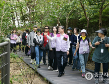 서울 중구(구청장 김길성)의 정책만족도 1위인 ‘남산자락숲길’이 주민들의 발걸음으로 활기를 띠고 있다. 사계절 누구나 걷기 좋은 무장애 친화 숲길인 남산자락숲길은 중구를 대표하는 힐링 명소로 자리 잡았다. 올해 1월부터 8월까지 남산자락숲길을 찾은 이용객은 총 46만4천여 명. 월평균 약 5만8천 명에 달한다. 지난해 6월에 3만9천여 명이 이용했던 것과 비교해, 올해 6월에는 8만8천여 명이 다녀가며 이용객이 두 배 이상(약2.25배) 증가했다. 10월에도 다양한 주민들이 남산자락숲길을 찾아 가을을 만끽하며 힐링하고 있다. 지난 10월 17일, 숲 해설가로 활동하는 명동 살트르 성 바오로 수녀회의 수녀와 농아인 주민 등 20여 명이 함께 남산자락숲길을 산책했다. 참가자들은 서울방송고등학교부터 한남테니스장까지 이어지는 코스에서 가을 숲길에서 확대경‘루페’를 활용해 숲의 식물들을 자세히 살펴보며 자연과 교감했다. 농아인 주민들은 “남산자락숲길에서 가을을 느끼고, 위로와 힘을 얻었다”,“수녀님의 해설과 구청의 지원 덕분에 알차고 즐거운 시간을 보낼 수 있어서 감사하다”등 소감을 밝혔다. 앞서 지난 15일에는 서울 중구자원봉사센터 주관으로 어르신 26명을 초청해