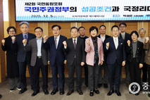 박성준 국회의원(더불어민주당, 서울 중구성동구을)이 주최하고 국민통합포럼과 사회공헌포럼이 공동 주관한 ‘국민주권정부의 성공조건과 국정리더십의 과제’ 토론회가 12월 5일 국회 의원회관 제1세미나실에서 성황리에 개최됐다. 이번 토론회는 이재명 정부가 마주한 시대적 도전에 대응하기 위해 국민주권시대의 국정철학과 리더십 방향을 심도 있게 논의하는 자리로 마련됐다. 토론회에서는 차재권 부경대학교 교수가 ‘이재명 정부의 국정운영과 과제’를 주제로 첫 발제를 진행했다. 차 교수는 국민주권정부의 성공을 위해서는 국민 체감형 성과 창출과 사회 통합·갈등 조정 체계 구축이 중요하다고 강조하며, 내란과 비상계엄 사태를 겪은 뒤 복원된 민주주의 기반을 더욱 공고히 하기 위해 국정철학의 일관성, 데이터 기반 행정, 민생 중심 정책 체계를 강화해야 한다고 제언했다. 이어 김재한 한림대학교 교수는 ‘이재명 대통령의 국정리더십 특성’ 발제를 통해 대통령 리더십의 핵심을 민생 중심 실행력, 위기 대응 능력, 정의·공정 철학으로 설명했다. 김 교수는 권력이 분점된 시대에 국민주권정부가 성공하기 위해서는 협치 역량과 수평적 소통 구조가 필수라며 국정운영 전반의 신뢰와 책임성 강화를 강조했다