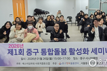 지역사회 통합돌봄 제도 시행을 앞두고, 서울 중구에서 통합돌봄 활성화를 위한 민간 주도의 논의가 본격화되고 있다. 서울중구지역자활센터(박진수 센터장)는 지난 1월 26일 중구행복돌봄센터, 에스이임파워 사회적협동조합과 함께 ‘중구 통합돌봄 활성화 세미나’를 주관·개최했다. 이날 세미나에는 지역 내 복지관, 재가방문요양기관, 장애인활동지원기관, 방문간호기관 등 돌봄 관련 기관 종사자 약 50여 명이 참석해 지역 통합돌봄에 대한 높은 관심을 보였다. 첫 번째 발제를 맡은 한국장애인개발원 조윤화 박사는 ‘고령 장애인의 돌봄 욕구와 돌봄 서비스에 관한 정책 과제’를 주제로 발표했다. 조 박사는 2024년 기준 전체 등록장애인 263만 1천356명 중 50세 이상이 80.9%를 차지하고 있으며, 65세 이상 등록장애인 비율도 2007년 32.7%에서 2017년 45.2%로 지속적으로 증가하고 있다고 설명했다. 반면 고령 장애인의 활동지원서비스 이용 경험 비율은 0.8%에 불과해, 고령 장애인을 포괄하는 통합돌봄 체계 구축의 필요성을 강조했다. 이어 한세대 오홍진 교수는 ‘중구 통합돌봄 활성화를 위한 9대 정책 과제’를 발표하며, 공적 돌봄 확대 방안으로 ‘동(洞) 단위