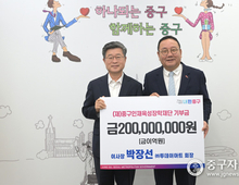 서울 중구(구청장 김길성)는 ㈜투데이아트 박장선 회장이 서울중구인재육성장학재단(이하 재단)에 지역 인재 육성을 위한 장학금 2억원을 10월 21일 중구청장실에서 전달했다. 이번 기탁금 2억원 중 1억원은 올해 새로 시작한‘드림잡 대학생 장학금’사업에 사용된다. 이 장학금은 최근 청년실업 등이 사회적 문제로 대두되는 만큼, 대학생 100명에게 지원해 취업 준비를 도울 예정이다. 박장선 회장은 “중구의 청년들이 경제적 이유로 꿈을 포기하지 않길 바란다”며 “앞으로도 재단이 청소년과 대학생을 위한 든든한 희망의 디딤돌이 되도록 최선을 다하겠다”고 전했다. 2023년 6월 재단 이사장으로 취임한 박장선 회장은 매년 꾸준히 장학금을 기부해왔다. 2023년과 2024년에 각각 1억 원을, 올해는 2억 원을 기부하며 총 4억 원의 장학금을 후원했다. 또한, 재단의 장학사업을 지속적으로 발굴하며 확대해 가고 있다. ‘드림잡 대학생 장학금’을 통해 자원 대상을 청년층까지 넓히고, ‘서울대 연계 멘토링 장학사업’, ‘도전! 글로벌 탐험대’ 등 다양한 프로그램을 운영하며 청소년들의 진로 탐색과 글로벌 역량 강화에도 앞장서고 있다. 김길성 중구청장은 “장학금은 단순한 금전적 지원