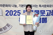 새마을문고 중구지부(회장 남준희)는 최근 국민독서경진 서울시 대회 종합평가부문에서 최우수상을 수상한 가운데 지난 11월 28일 다산동 플레이스남산에서 ‘제45회 대통령기 독서경진대회 중구시상식’을 가졌다. 이 자리에는 김길성 중구청장과 이정미 길기영 의원등이 참석한 가운데 청구동 문고 방혜리씨가 대상(서울시 대회 최우수상)을 수상한데 이어 청구동 새마을 작은도서관(회장 최길종)이 운영부문 우수상(서울시 대회도 우수상)을 수상하는 겹경사를 맞았다. 최우수상에는 청구동문고 이주아, 중구지회 장태기, 필동문고 황서윤·공계숙, 우수상에는 약수동문고 박성현, 회현동문과 박소율, 황학동 문고 김동현, 신당동 문고 서경애, 장려상에는 신당5동문고 백명순, 약수동 문고 채준오, 동화동문고 김지연, 다산동문고 아노씨등이 각각 수상했다. 이에 앞서 2025 작은도서관 활성화에 기여한 공로로 회현동문고 노문이, 필동문고 한은진, 신당동문고 박가빈, 다산동문고 서용석, 약수동문고 이현미, 청구동문고 방혜리, 신당5동문고 정난희, 동화동 문고 유선양, 황학동문고 김혜정씨등이 중구청장 표창장을 각각 받았다. 시상식 후에는 뷔폐로 준비한 만찬과 함께 최길총 총무(청구동문고 회장)의 진